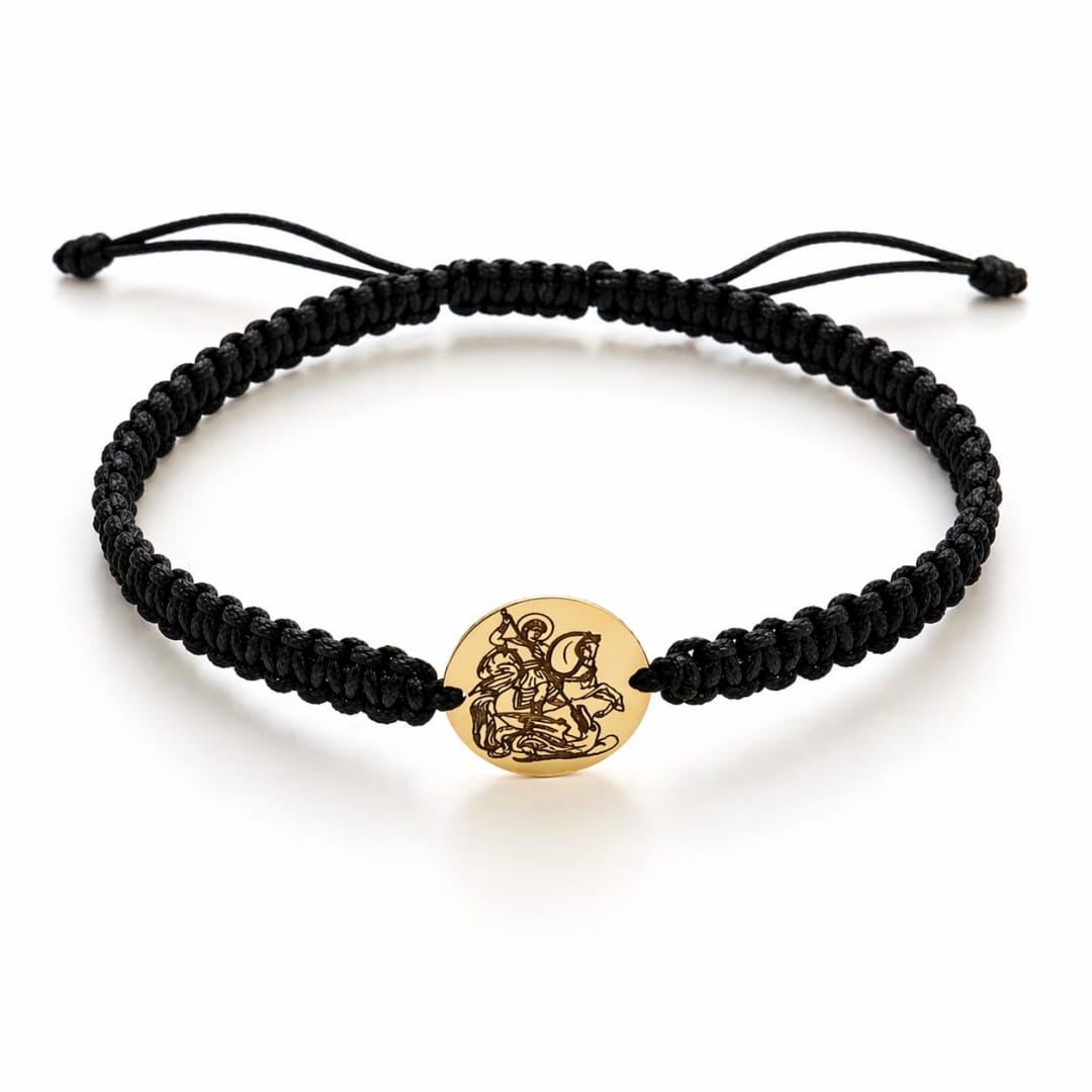 Bratara este cu snur impletit negru si banut din aur galben cu dimensiunea de 14 mm diametru, ce se poate grava fata si verso.