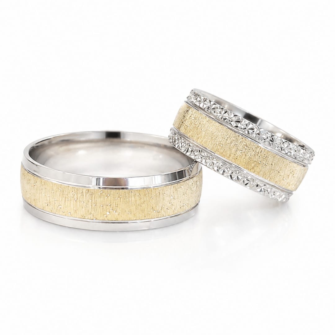 Verighete Argint 925 Placate Cu Rodiu Si Aur Galben